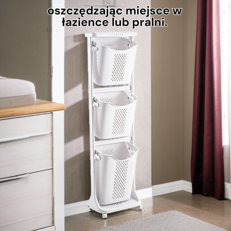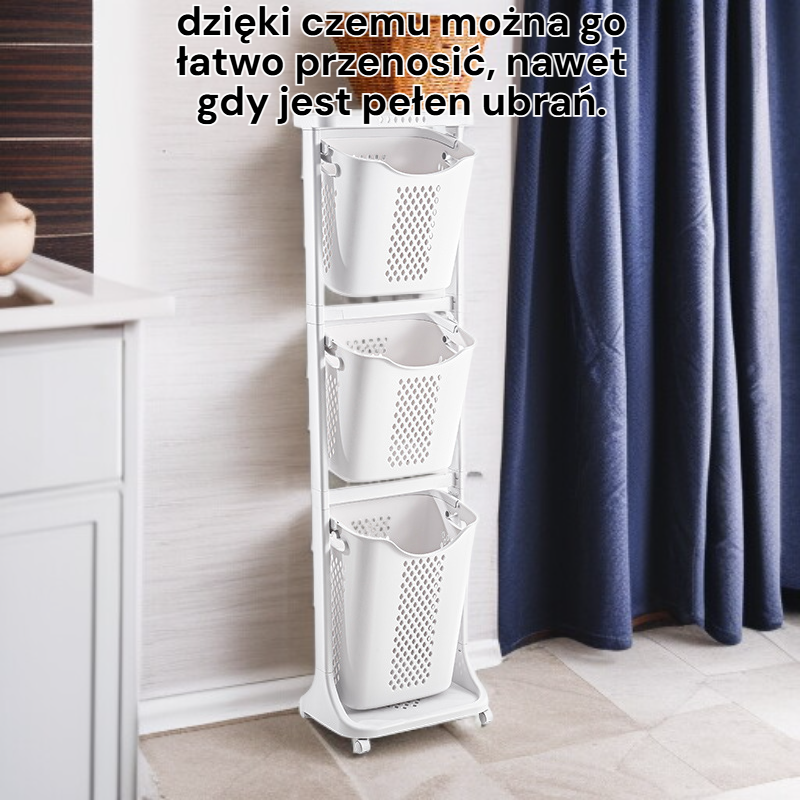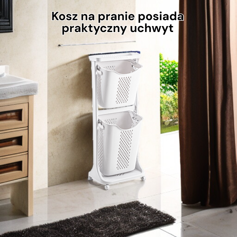 ● Wielofunkcyjny kosz na pranie z półką pozwala na wygodne przechowywanie ubrań oraz detergentów, oszczędzając miejsce w łazience lub pralni.